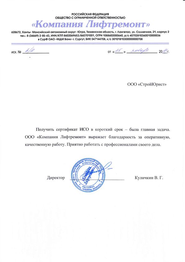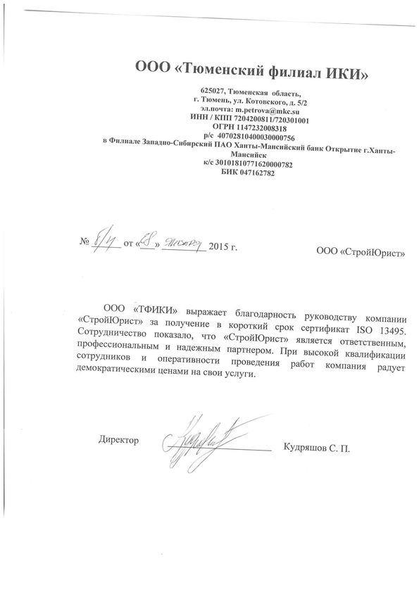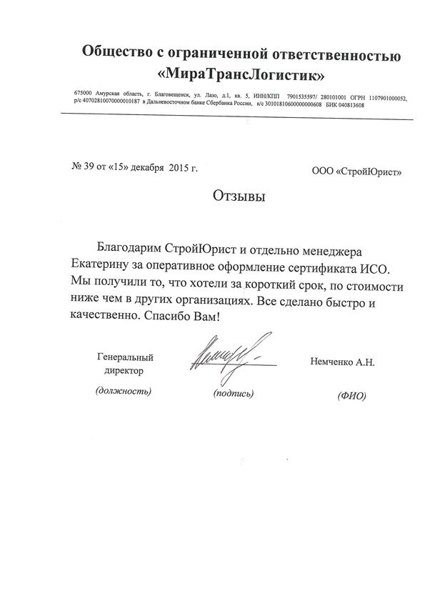 Отзывы клиентов "СтройЮрист" по ISO в Симферополе