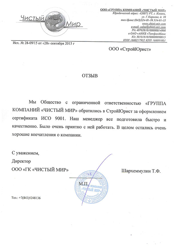 Отзывы клиентов "СтройЮрист" по ISO в Симферополе