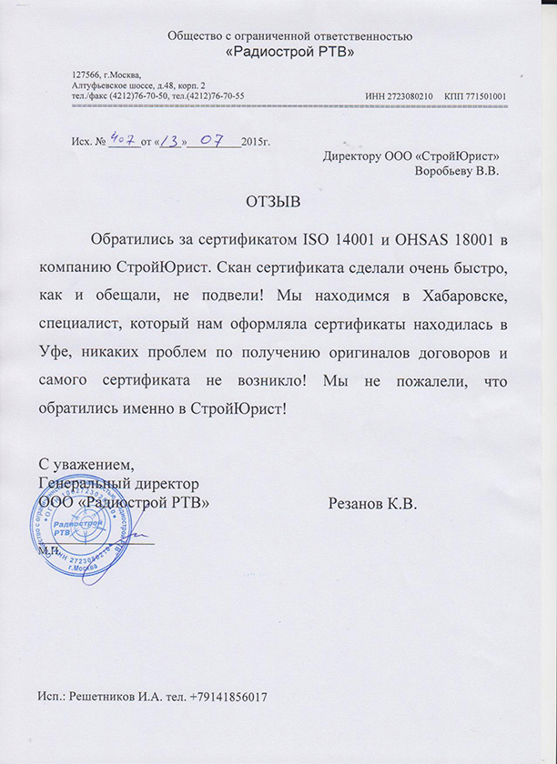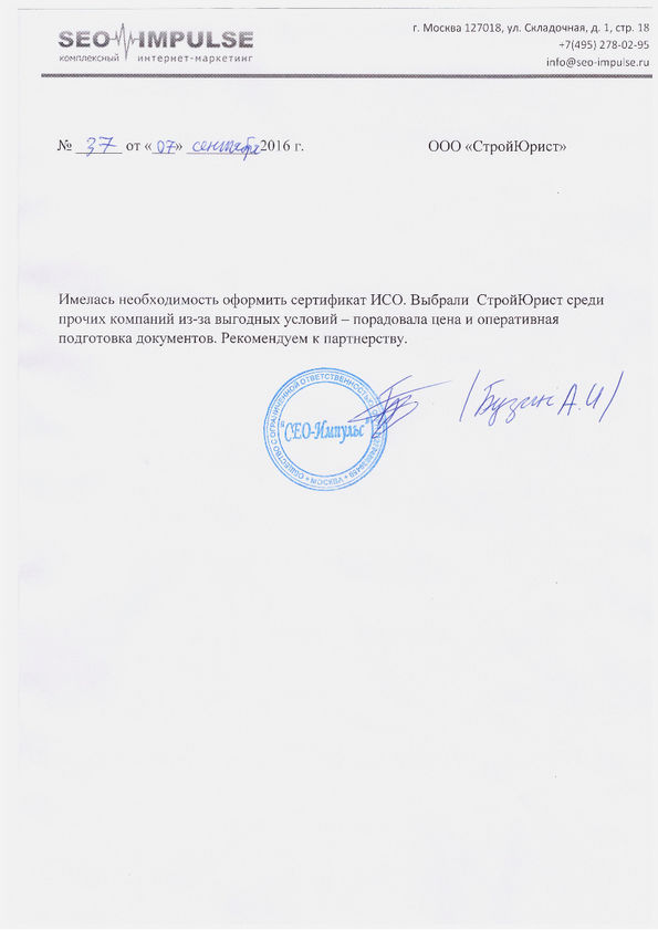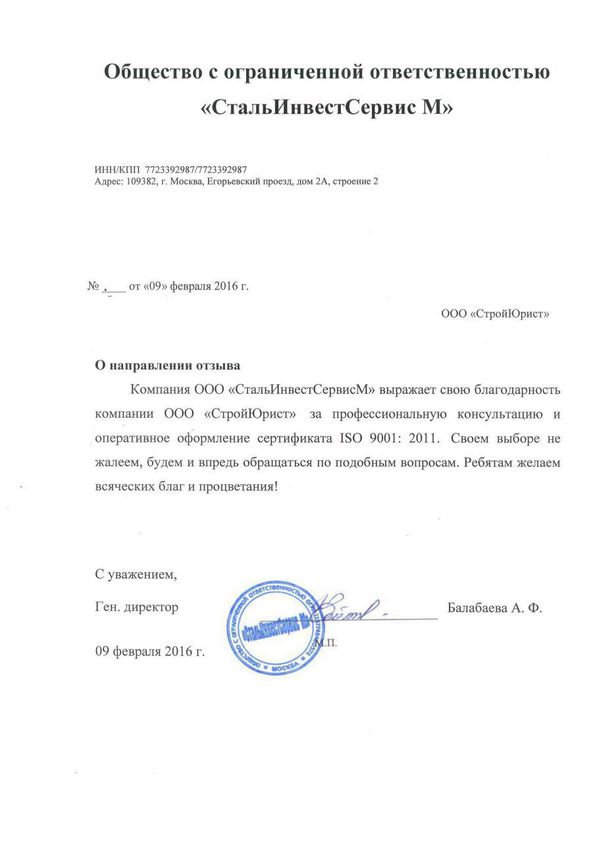 Отзывы клиентов "СтройЮрист" по ISO в Симферополе