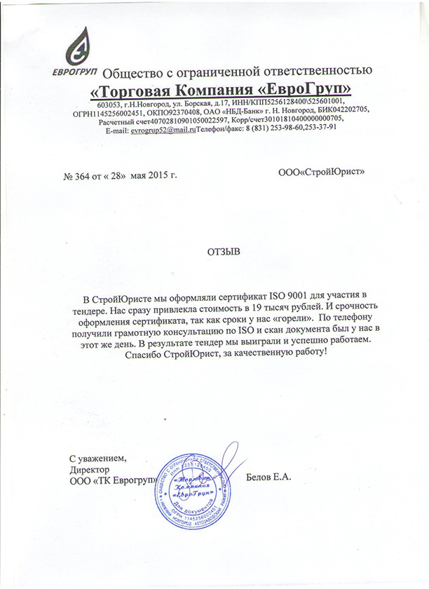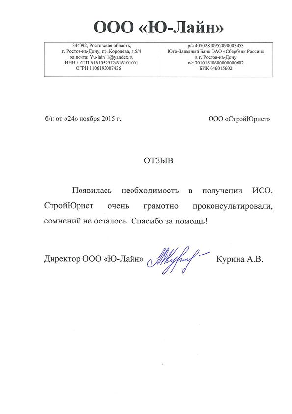 Отзывы клиентов "СтройЮрист" по ISO в Симферополе