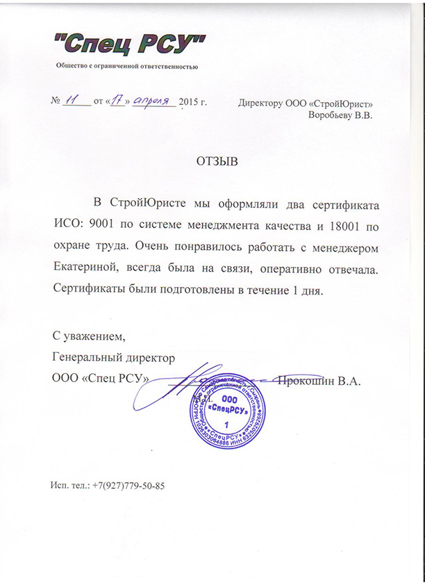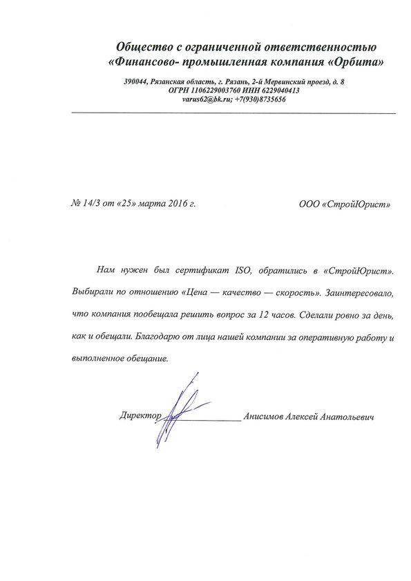 Отзывы клиентов "СтройЮрист" по ISO в Симферополе