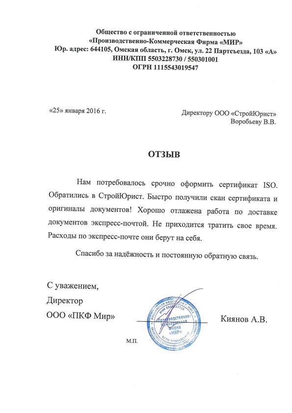 Отзывы клиентов "СтройЮрист" по ISO в Симферополе