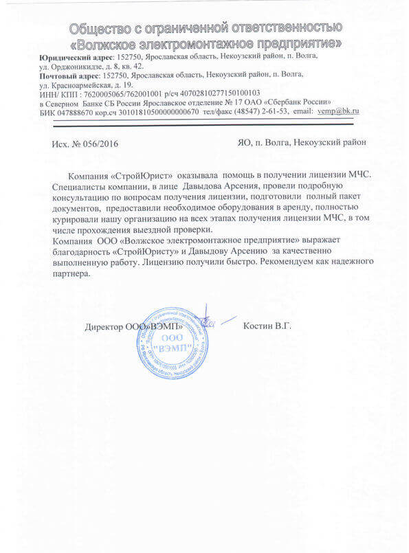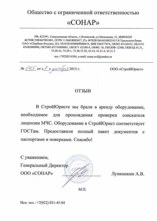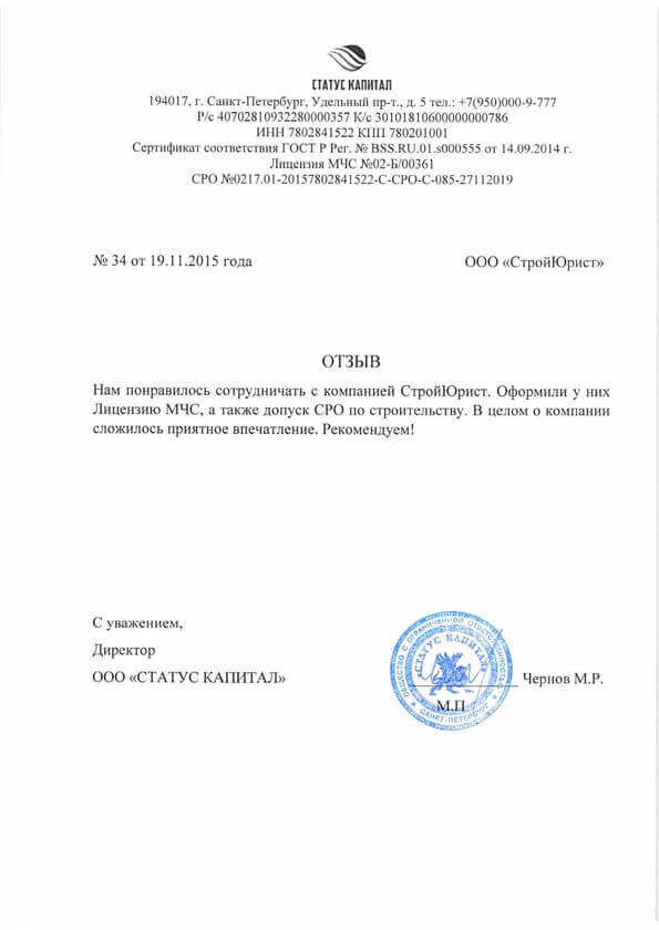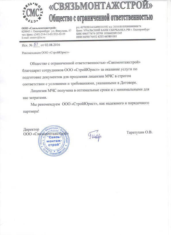 Отзывы клиентов "СтройЮрист" по лицензированию МЧС в Симферополе