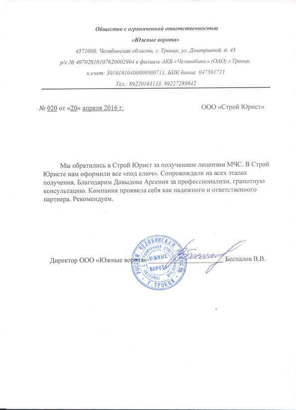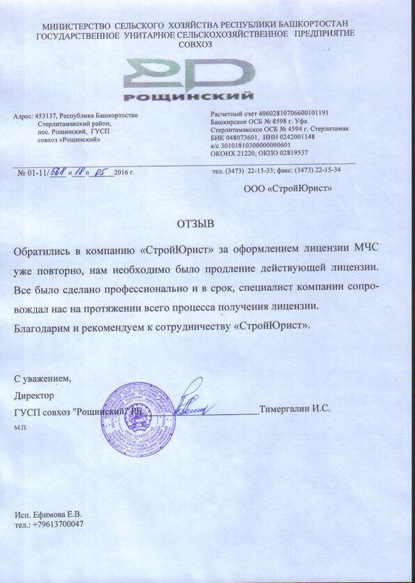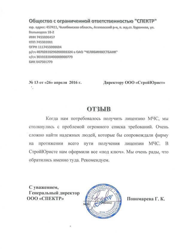 Отзывы клиентов "СтройЮрист" по лицензированию МЧС в Симферополе