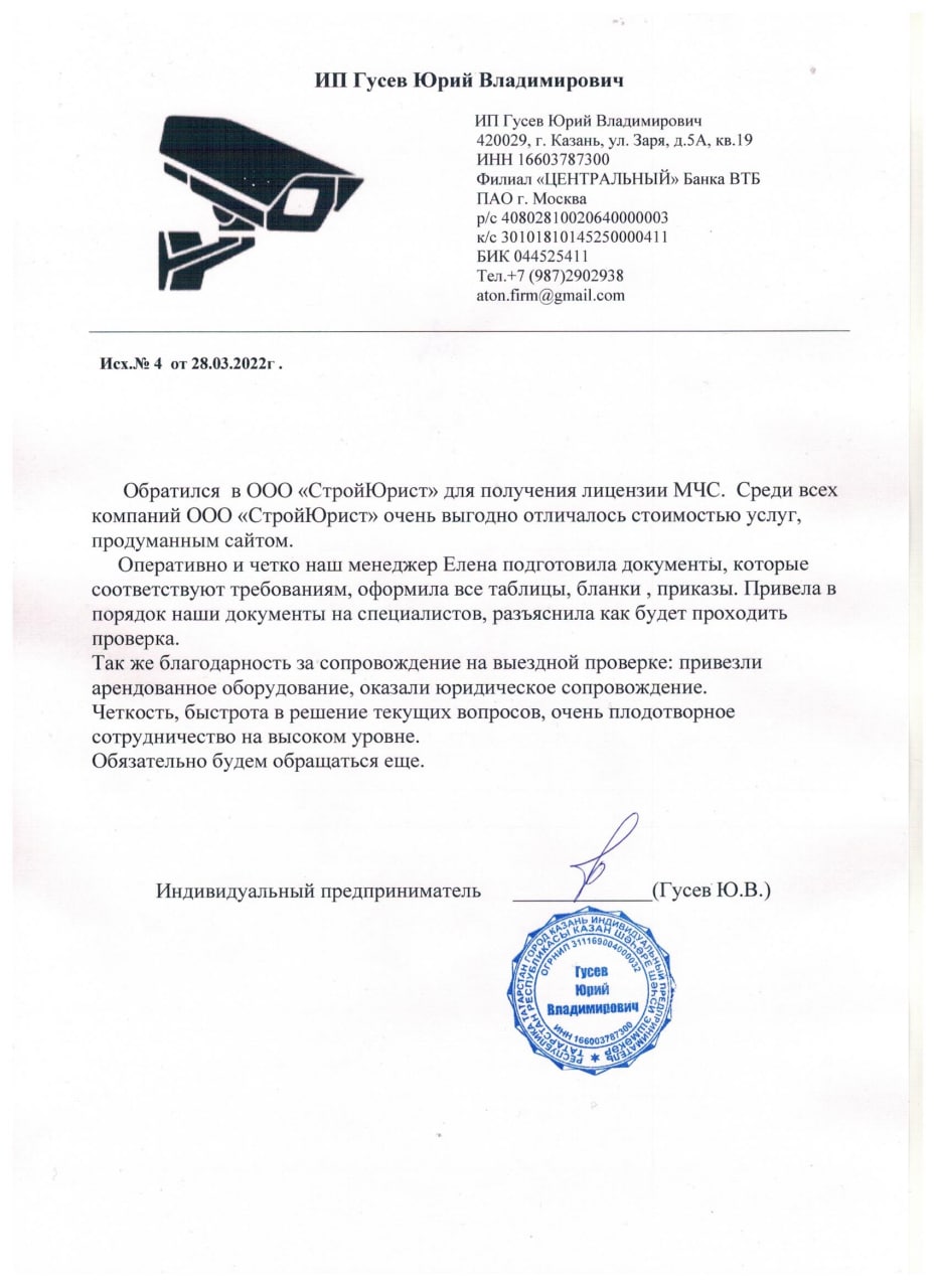 Отзывы клиентов "СтройЮрист" по лицензированию МЧС в Симферополе