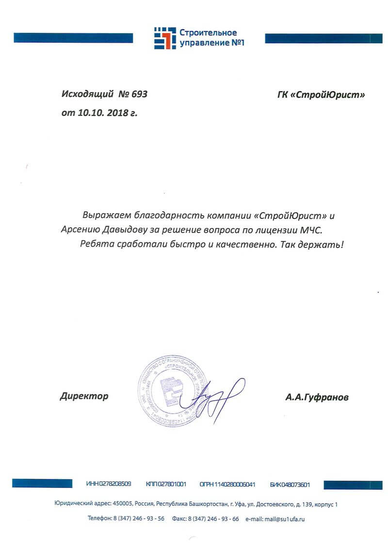 Отзывы клиентов "СтройЮрист" по лицензированию МЧС в Симферополе