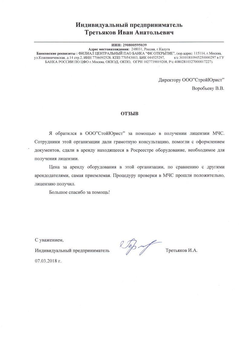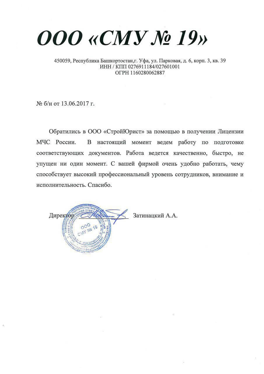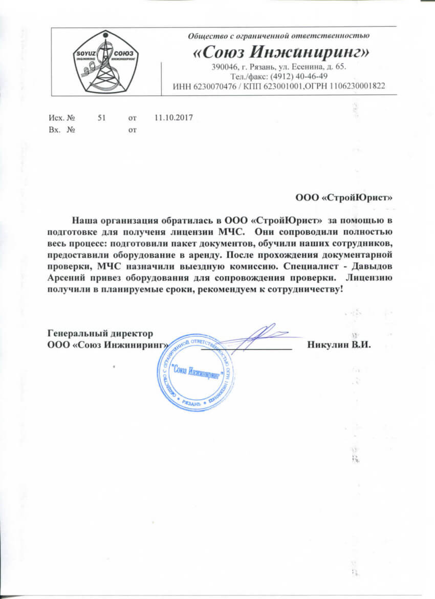 Отзывы клиентов "СтройЮрист" по лицензированию МЧС в Симферополе