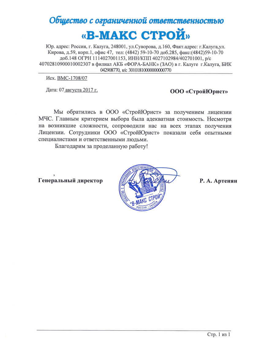Отзывы клиентов "СтройЮрист" по лицензированию МЧС в Симферополе