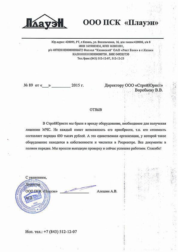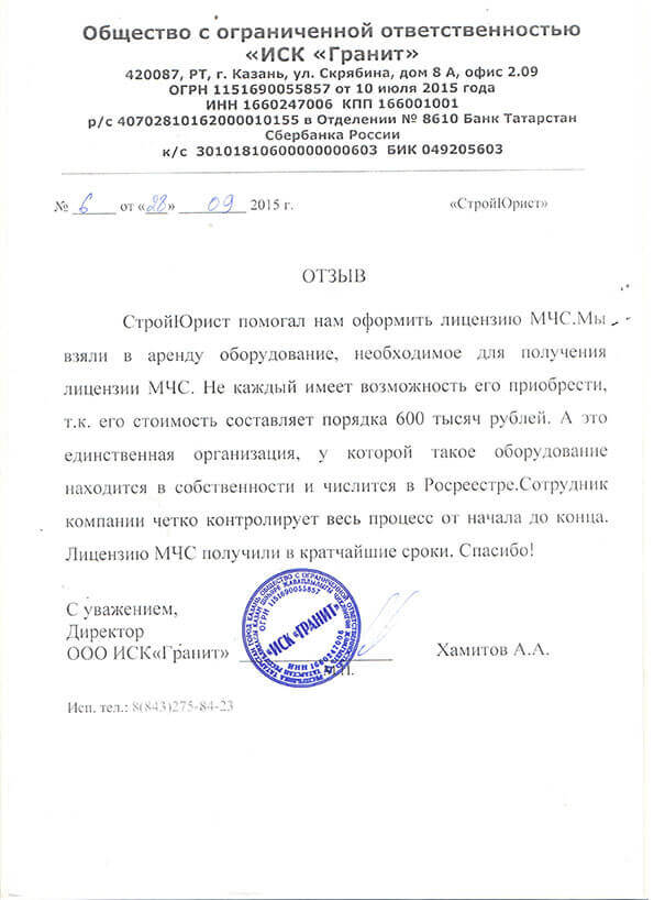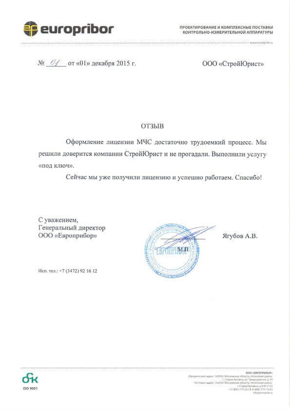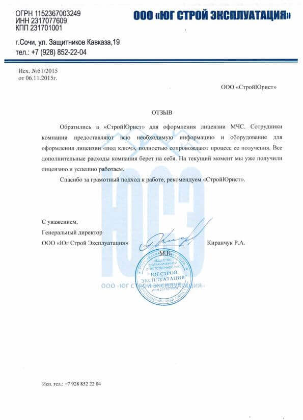 Отзывы клиентов "СтройЮрист" по лицензированию МЧС в Симферополе