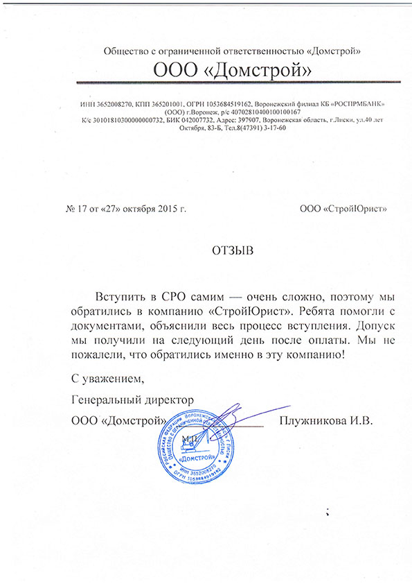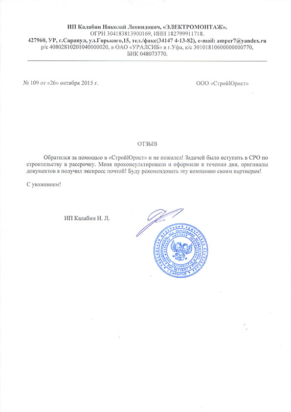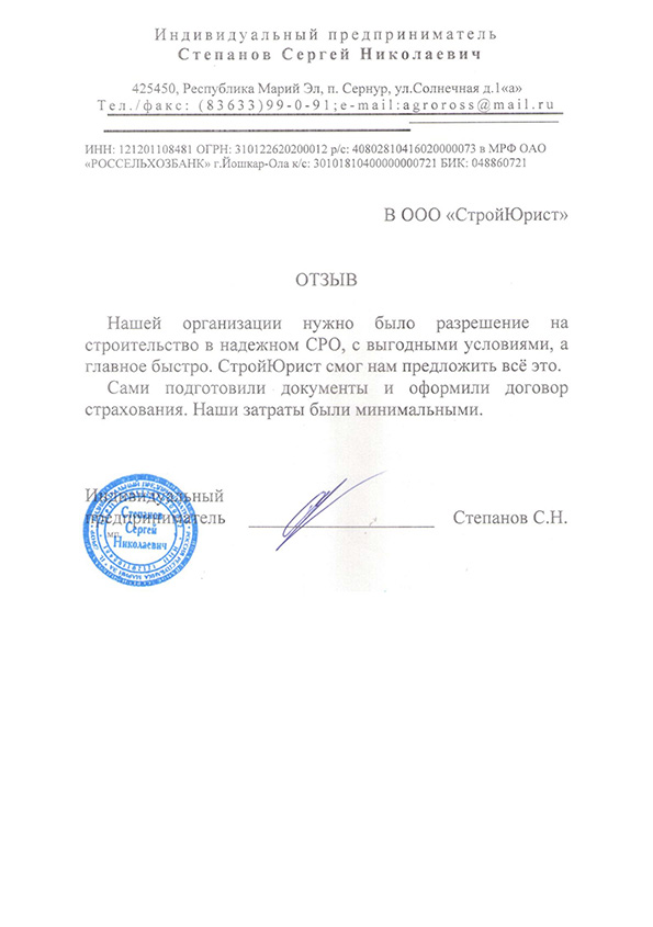 Отзывы клиентов "СтройЮрист" по вступлению в СРО в Симферополе