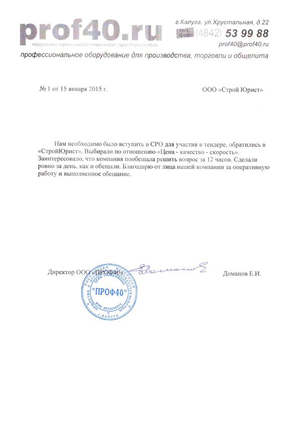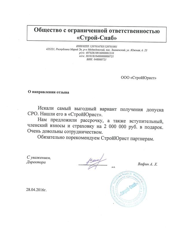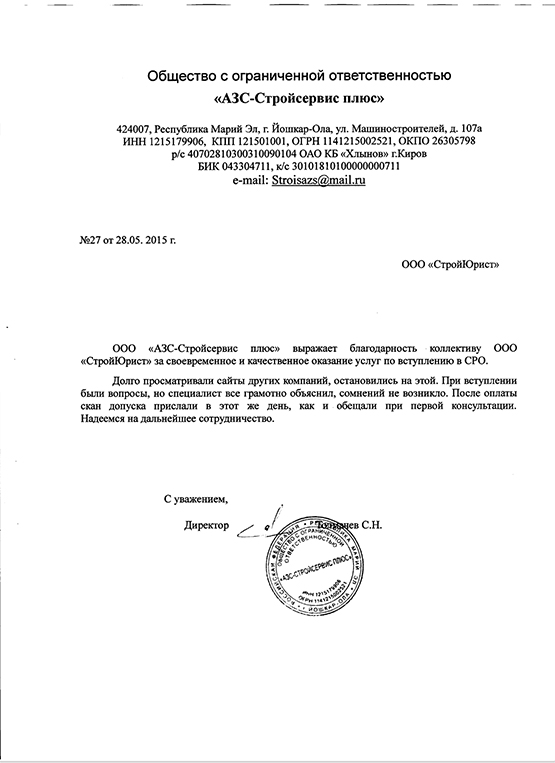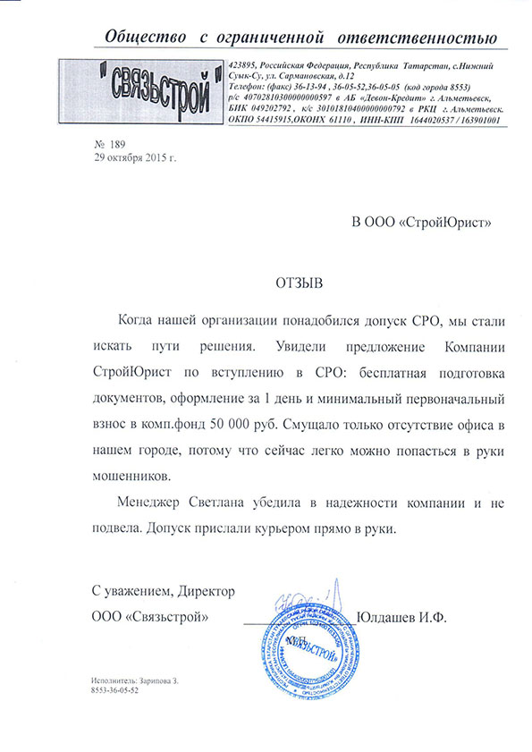 Отзывы клиентов "СтройЮрист" по вступлению в СРО в Симферополе