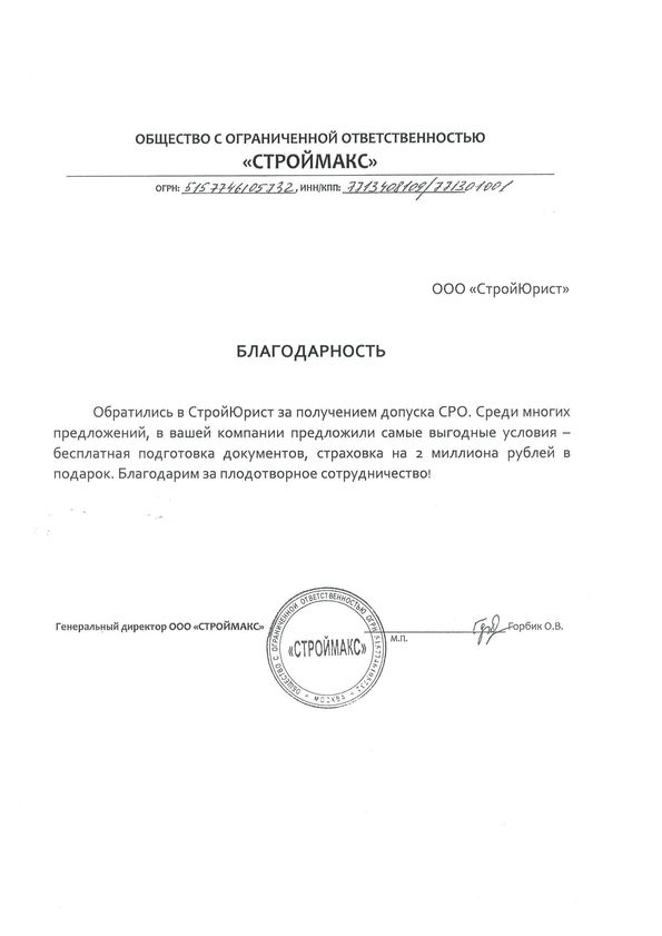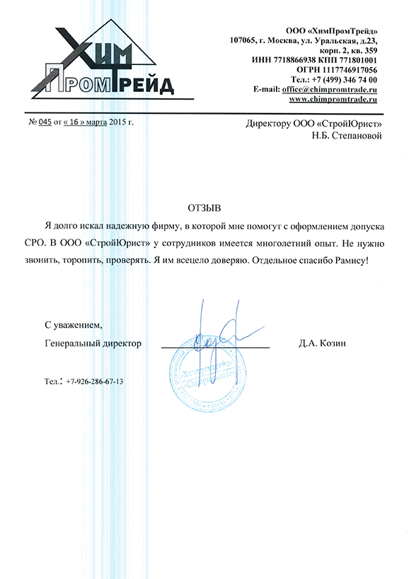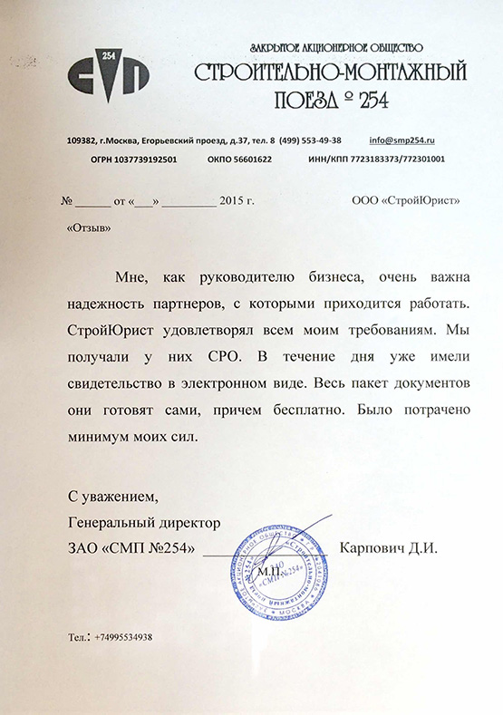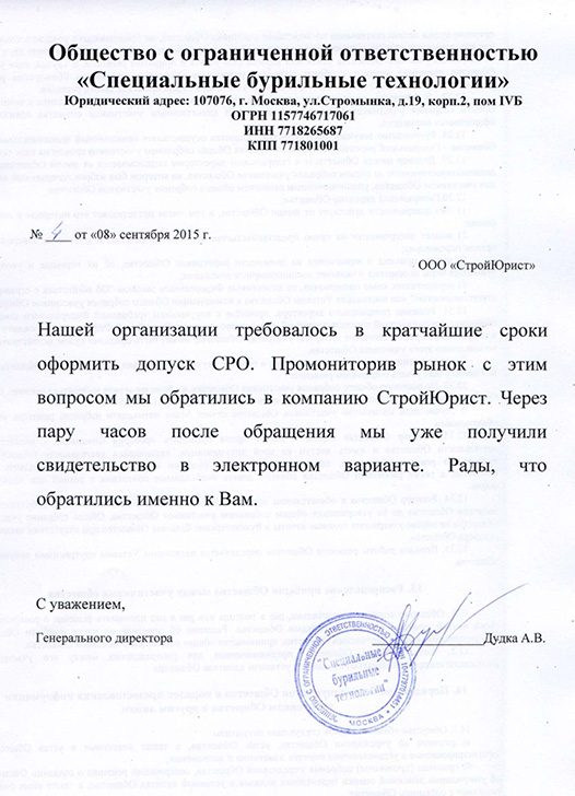 Отзывы клиентов "СтройЮрист" по вступлению в СРО в Симферополе