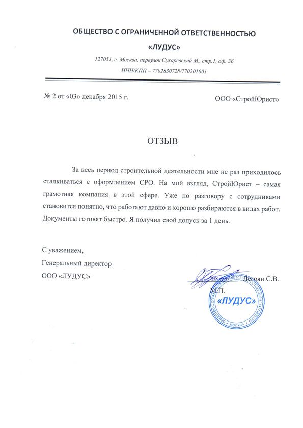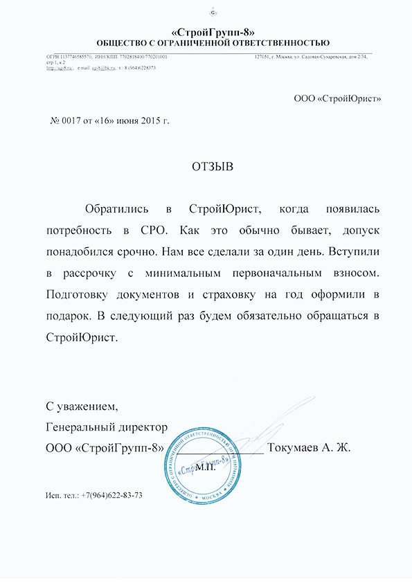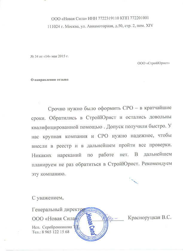 Отзывы клиентов "СтройЮрист" по вступлению в СРО в Симферополе