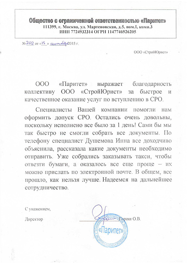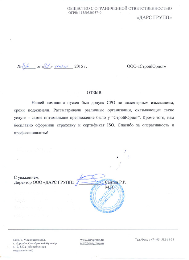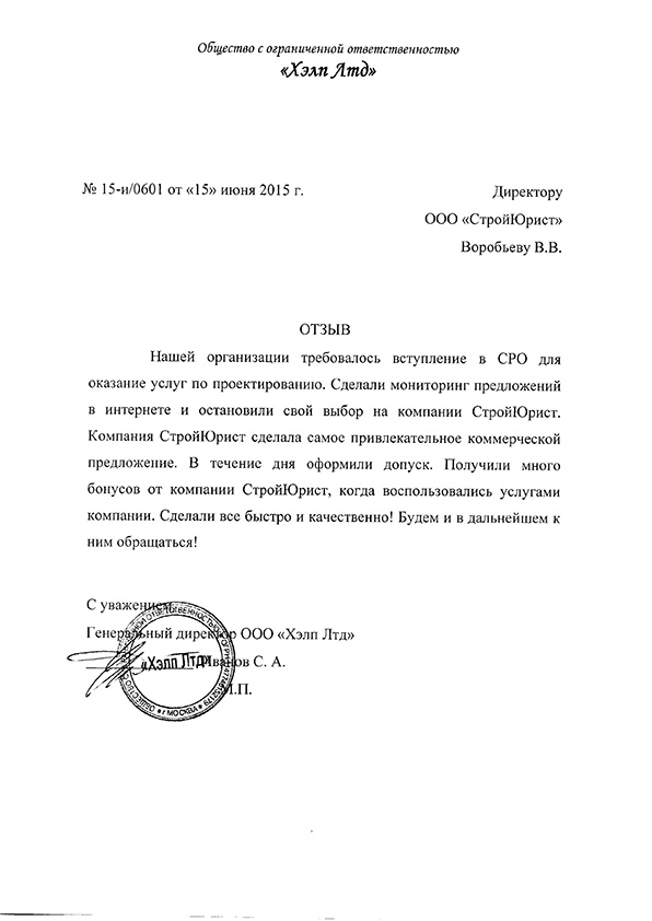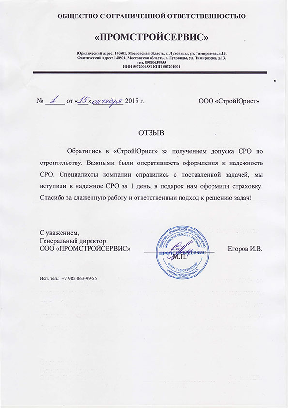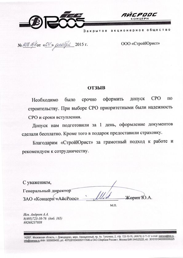Отзывы клиентов "СтройЮрист" по вступлению в СРО в Симферополе