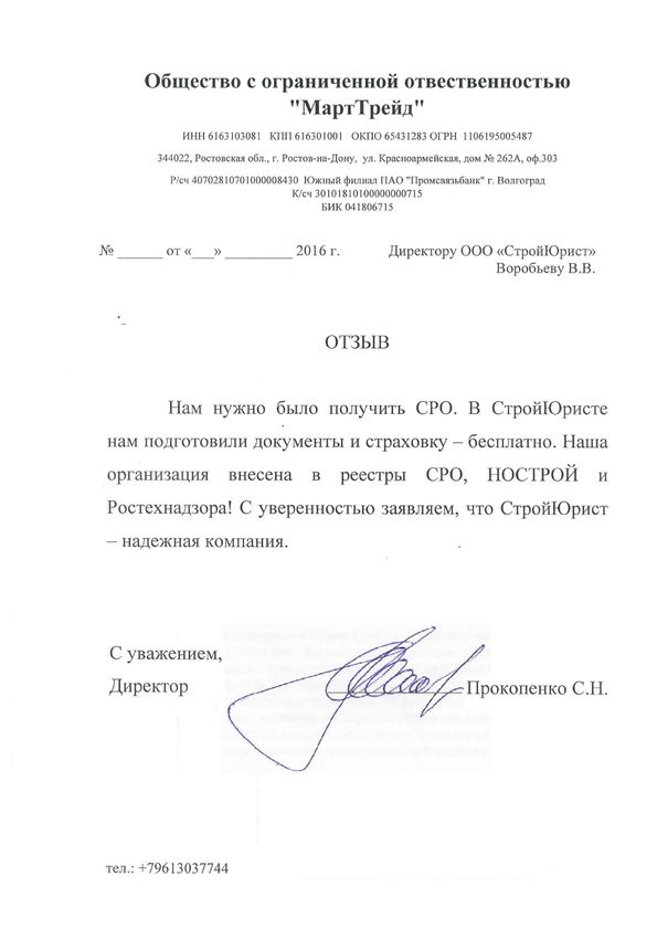 Отзывы клиентов "СтройЮрист" по вступлению в СРО в Симферополе