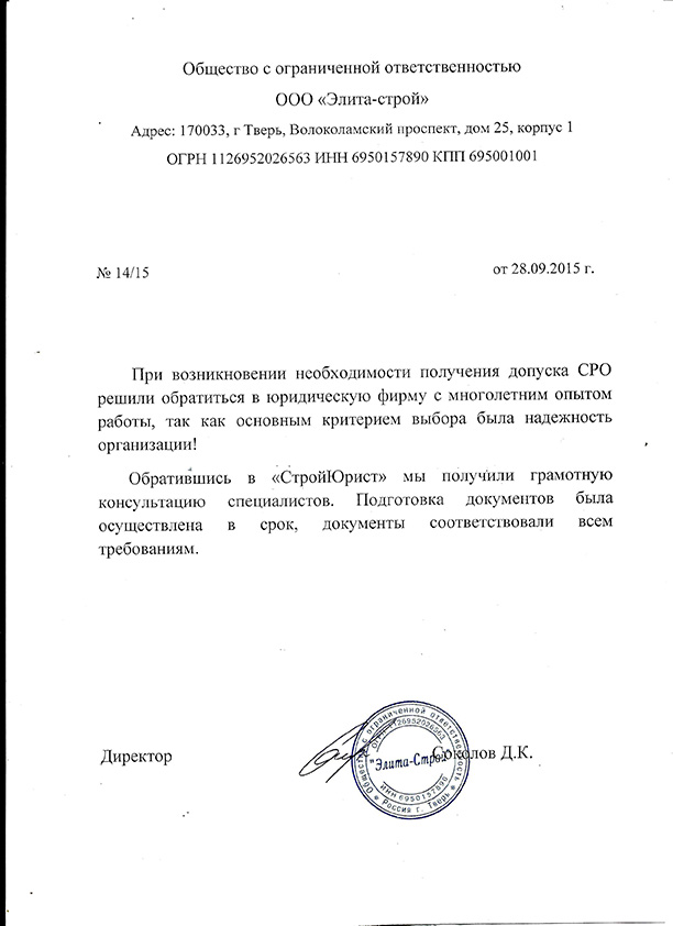 Отзывы клиентов "СтройЮрист" по вступлению в СРО в Симферополе