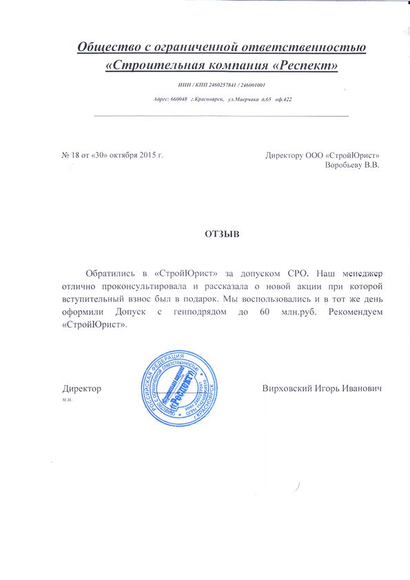 Отзывы клиентов "СтройЮрист" по вступлению в СРО в Симферополе