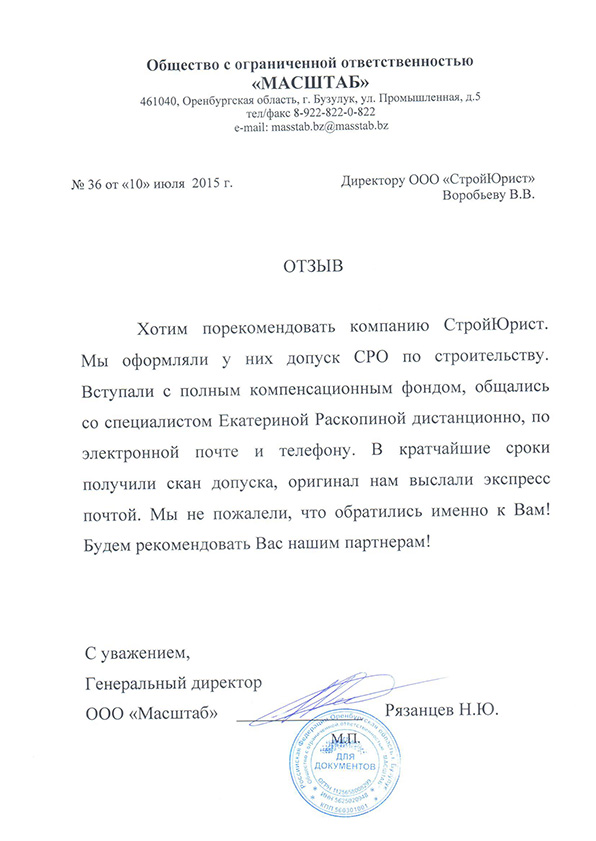 Отзывы клиентов "СтройЮрист" по вступлению в СРО в Симферополе