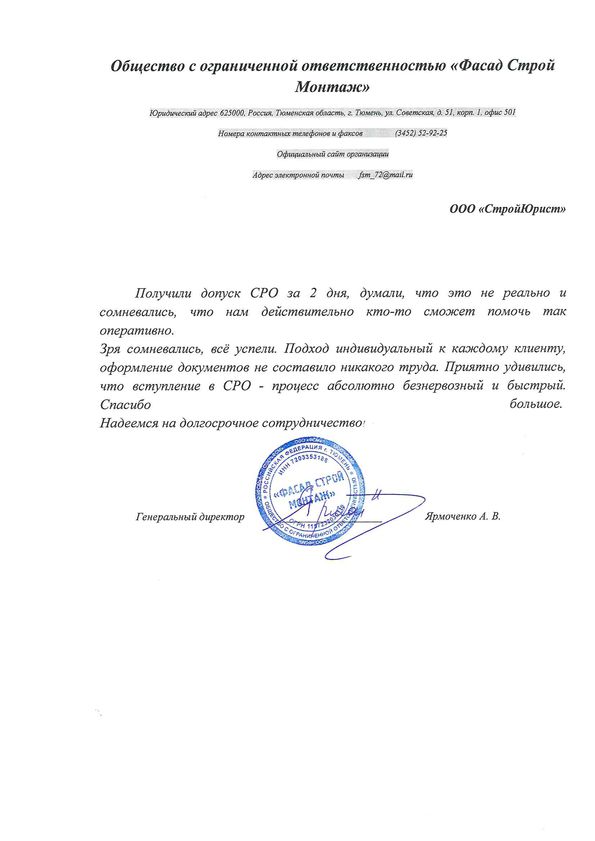 Отзывы клиентов "СтройЮрист" по вступлению в СРО в Симферополе