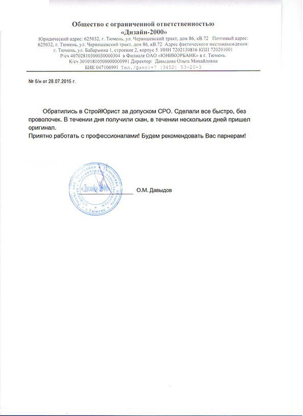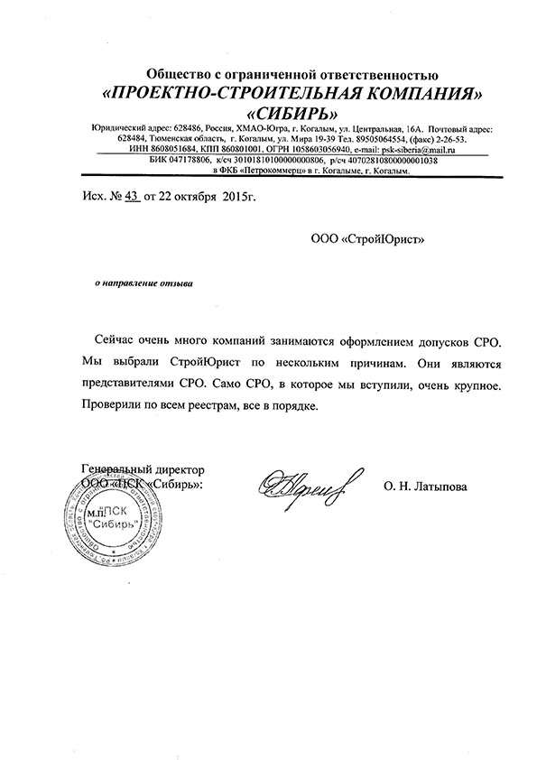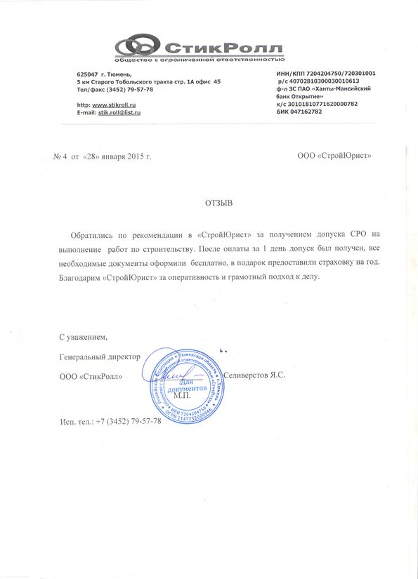 Отзывы клиентов "СтройЮрист" по вступлению в СРО в Симферополе