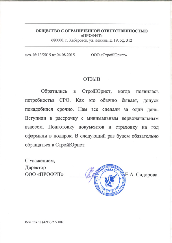 Отзывы клиентов "СтройЮрист" по вступлению в СРО в Симферополе