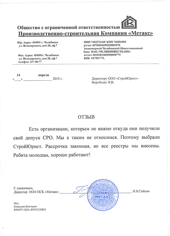 Отзывы клиентов "СтройЮрист" по вступлению в СРО в Симферополе