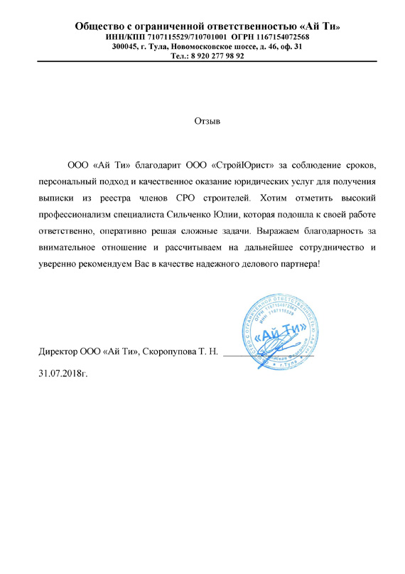 Отзывы клиентов "СтройЮрист" по вступлению в СРО в Симферополе